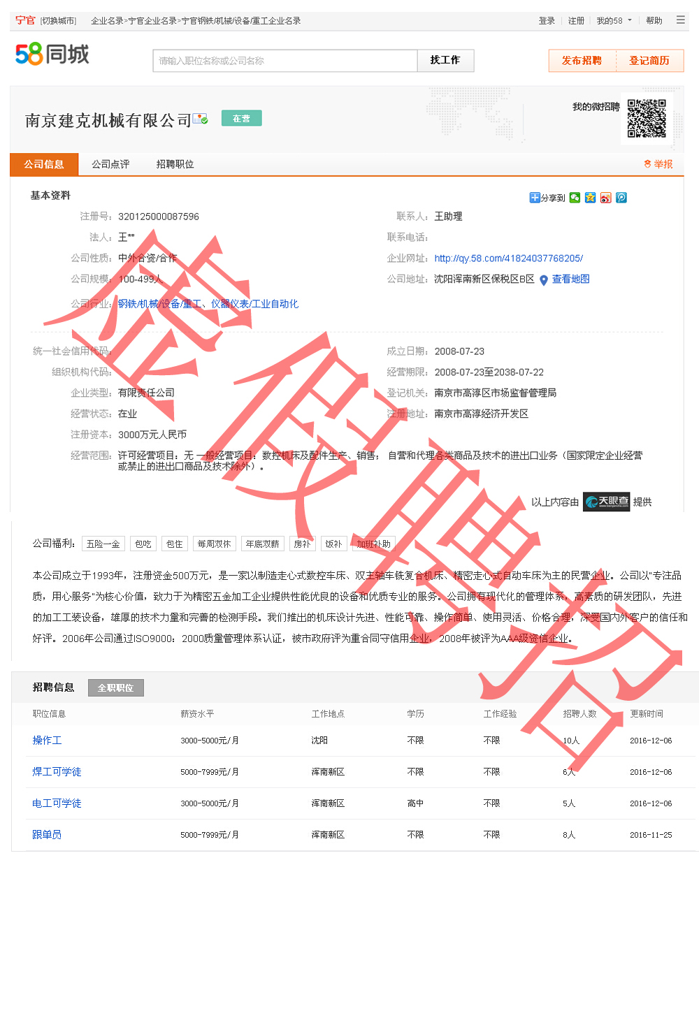 近期我司接到眾多沈陽(yáng)地區(qū)的應(yīng)聘電話,經(jīng)調(diào)查了解,有非法人員冒充我司在58同城注冊(cè)帳號(hào)并且發(fā)布沈陽(yáng)地區(qū)招聘廣告。現(xiàn)我司已與58同城溝通刪除該系列虛假信息中,請(qǐng)廣大應(yīng)聘者切勿上當(dāng)受騙,以免造成不必要的損失。如已經(jīng)發(fā)生不良情況,請(qǐng)及時(shí)報(bào)警并與58客服溝通。由此帶來(lái)…