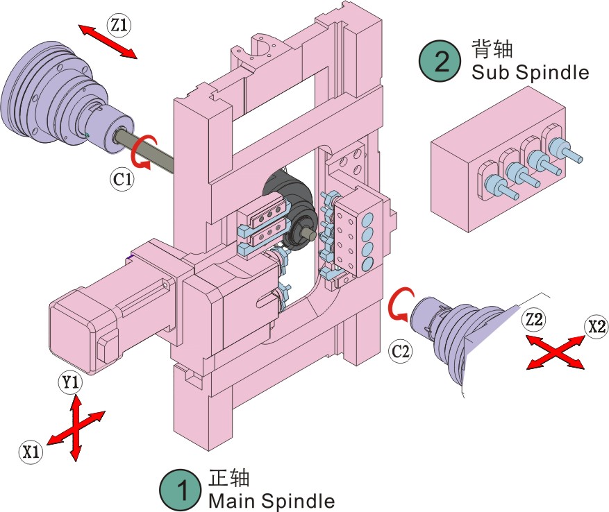 | 移動軸數(shù) | 5軸 | X 1 、Y 1 、Z 1 、X 2 、Z 2 | |